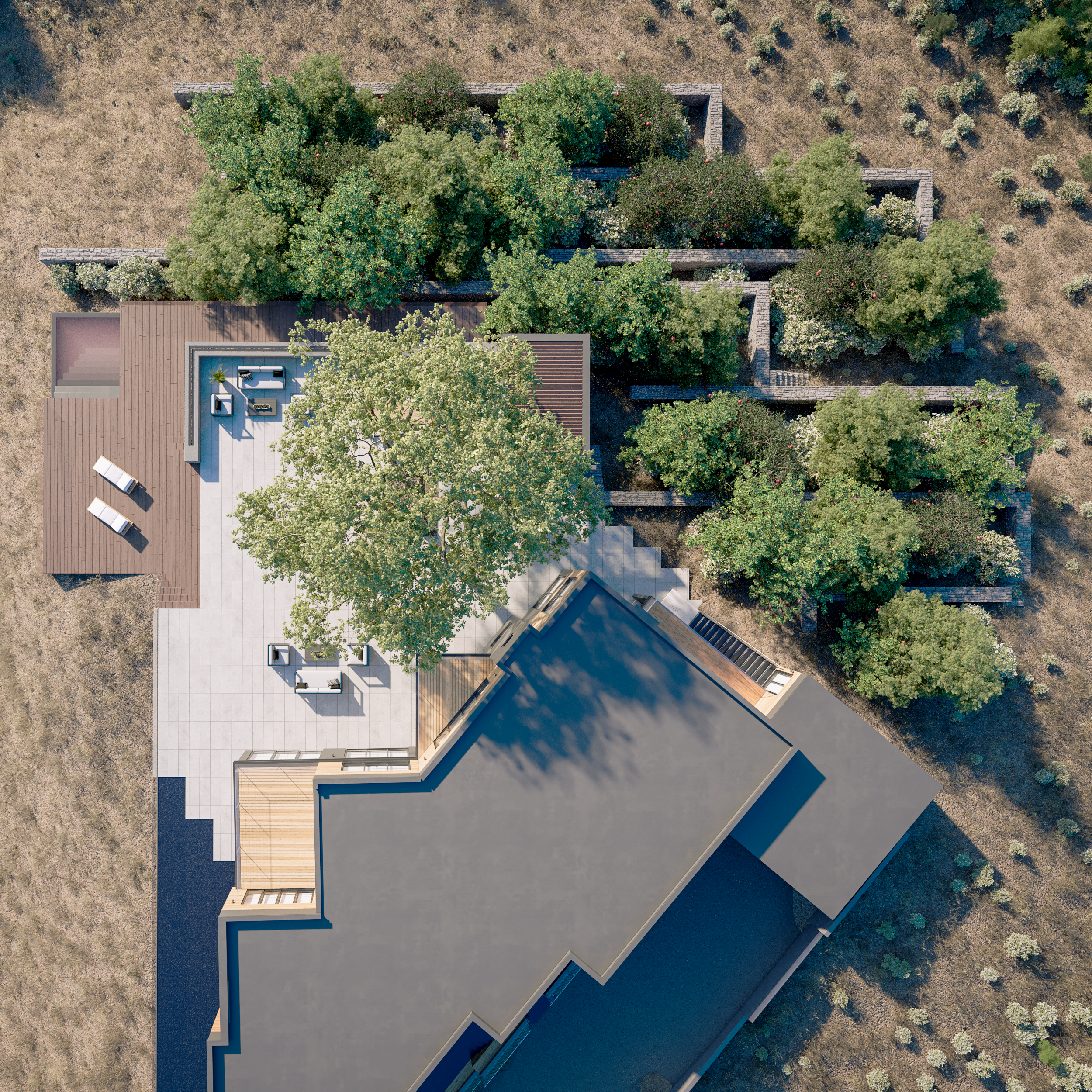 This architectural addition and landscaping project seamlessly integrates with the existing structure and harmonizes with the site’s natural context. By leveraging the topography of the hillside, the design creates diverse, layered spaces that blend organically into the landscape. The addition is thoughtfully planned to follow the site’s natural grade, minimizing excavation and fill while preserving the hillside’s integrity. Both interior and exterior spaces are designed to maximize the benefits of natural elements, including sunlight, ventilation, and surrounding views. Outdoor terraces, pathways, and gardens flow effortlessly from the structure, creating a continuous connection between built and natural environments. The result is a cohesive design that enhances the functionality of the home while respecting and celebrating its unique setting.